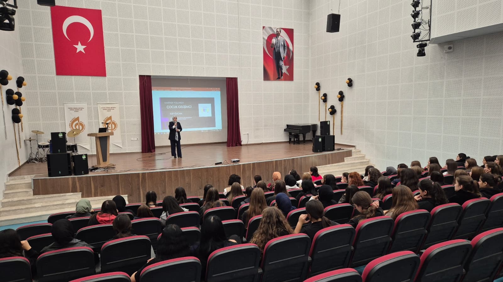Öğrencilere çocuk gelişimi alanının tanımı, çalışma alanları ve mesleğin günlük uygulamaları anlatıldı. Öğrenciler, üniversite eğitiminden kariyer fırsatlarına kadar mesleğe giden yol hakkında bilgi edinme fırsatı buldular.
